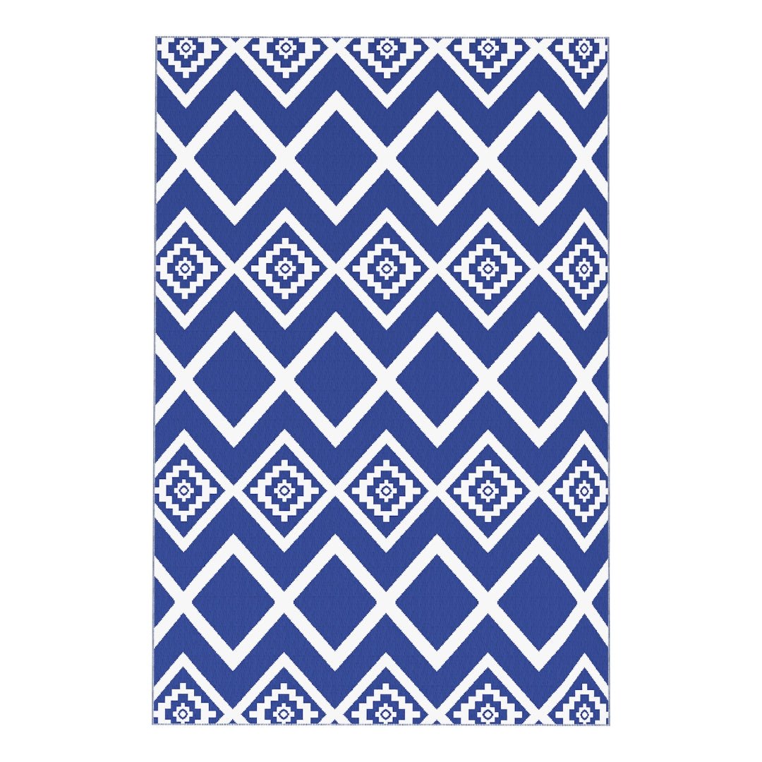 Outsunny Reversible Outdoor Garden Rug – Blue & White Geometric (182cm x 274cm) - Clara Shade Sails - Outsunny -