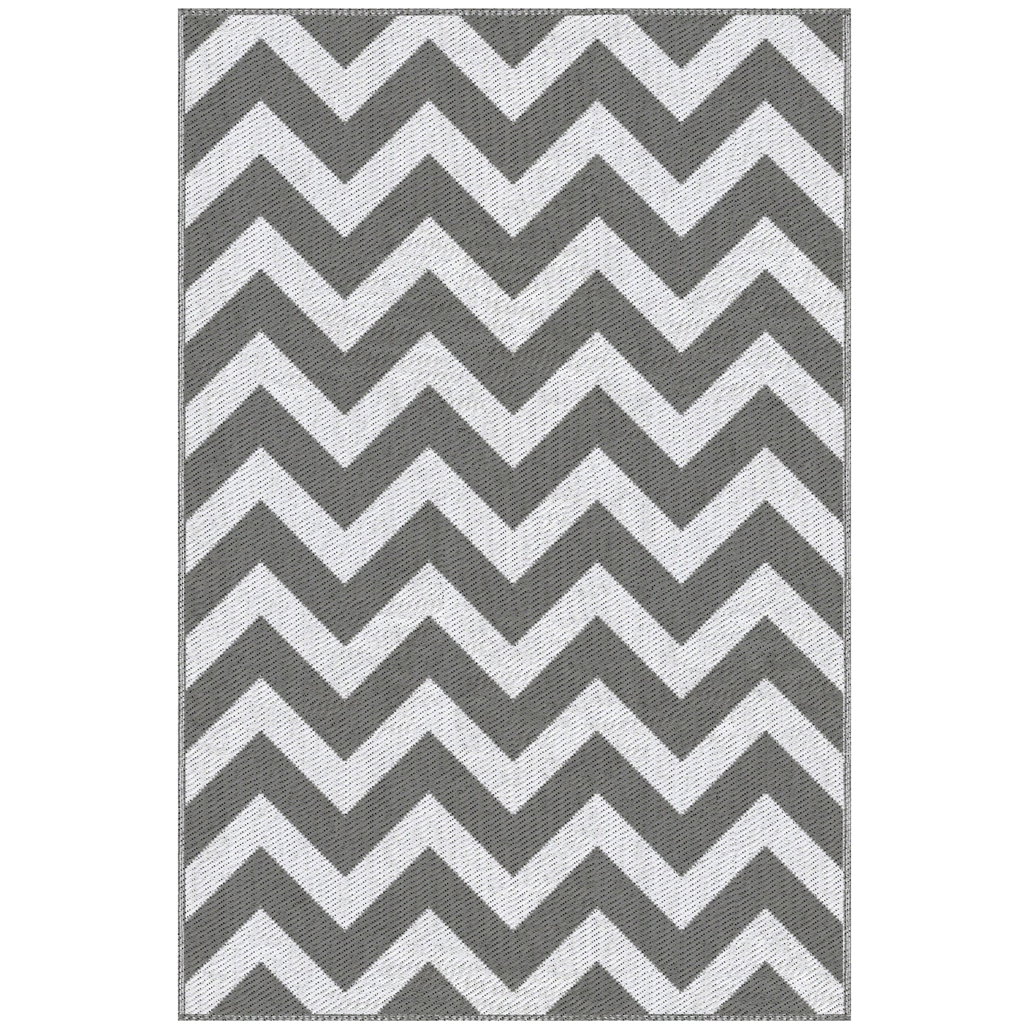 Outsunny Reversible Outdoor Garden Rug – Grey & White Zigzag (182cm x 121cm)